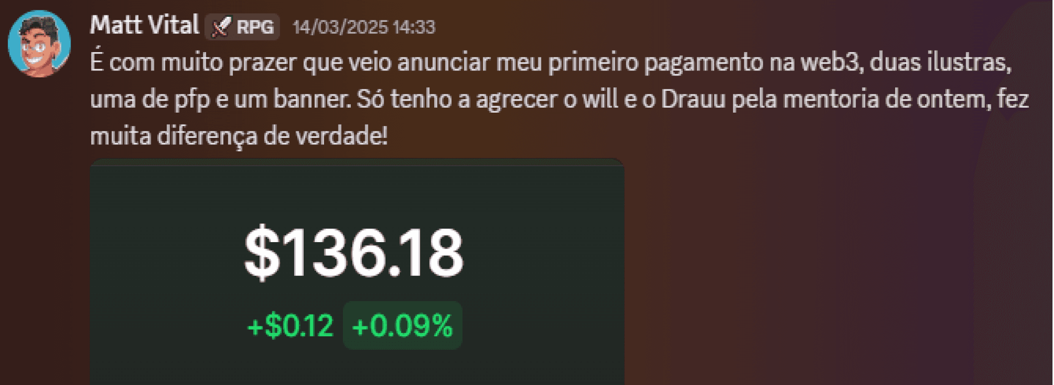 GM consegui já ganhar umas mil doletinhas aqui trabalhando com web3 e com os conselhos do Wiiu e do Draau!